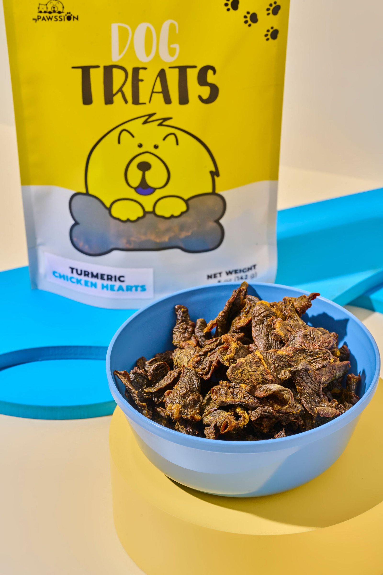I have three dogs and They have an undeniable obsession with chicken treats! Whether it’s chicken feet or this, turmeric chicken hearts, they go absolutely crazy for them.