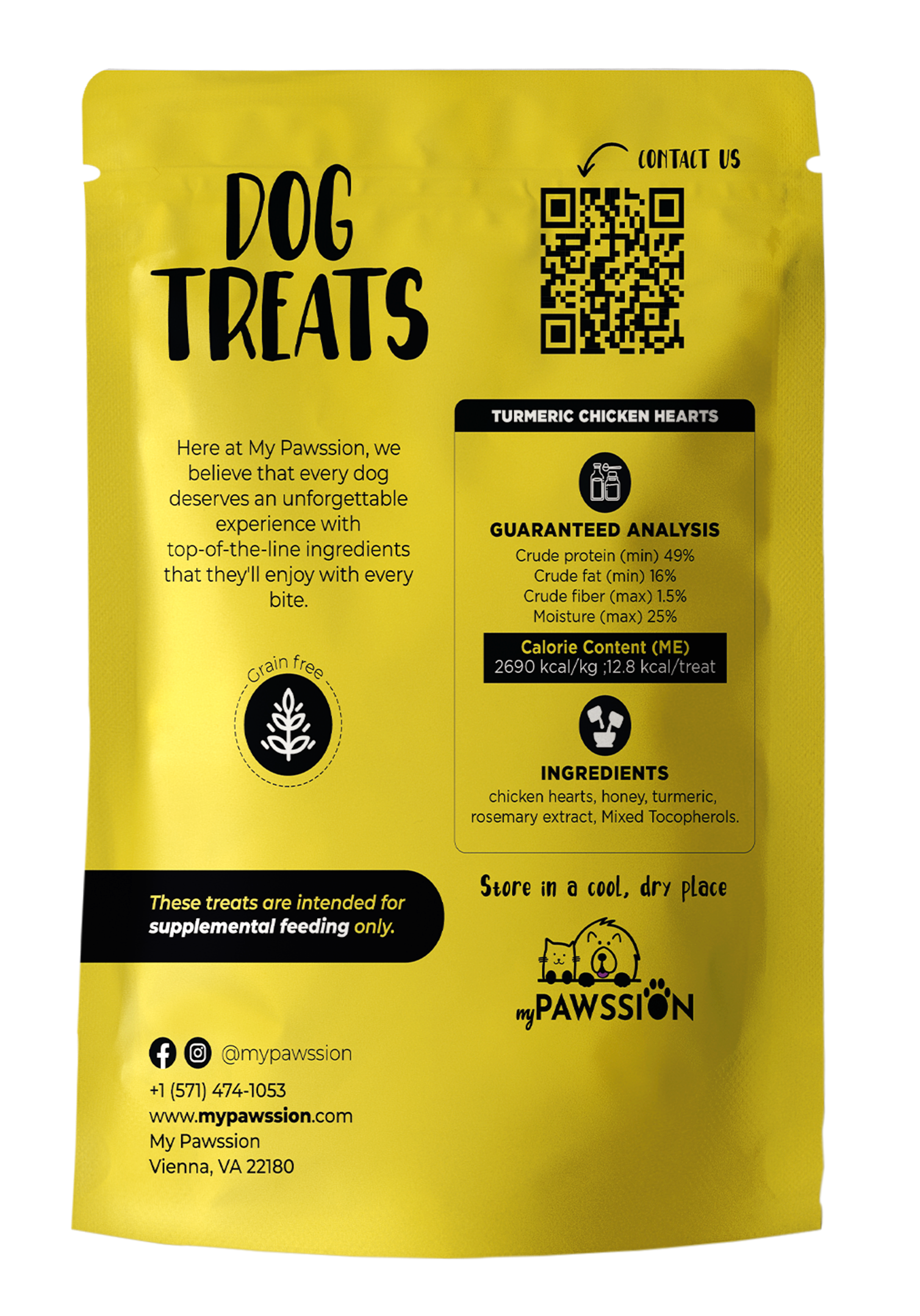 These delicious treats are made from high-quality, all-natural chicken hearts that are coated in turmeric for added health benefits. Turmeric is a powerful anti-inflammatory and antioxidant, making it a great addition to your dog’s diet. Our dehydrated chicken hearts are easy to digest and packed with protein, making them the perfect snack or training treat for your furry friend. Plus, they are free from artificial preservatives, colors, and flavors, ensuring that your dog is getting only the best. Give your dog the taste they love and the nutrition they need with our Turmeric Chicken Hearts